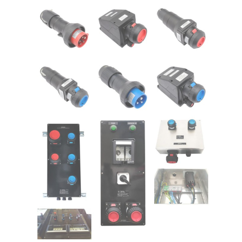 The exclusive interlock device is equipped with the plug and socket device. The switch is not turned on if it is not rotated and the plug can not be pulled out when the switch is turned on after the plug is inserted into the socket, which the non-live action is realized.