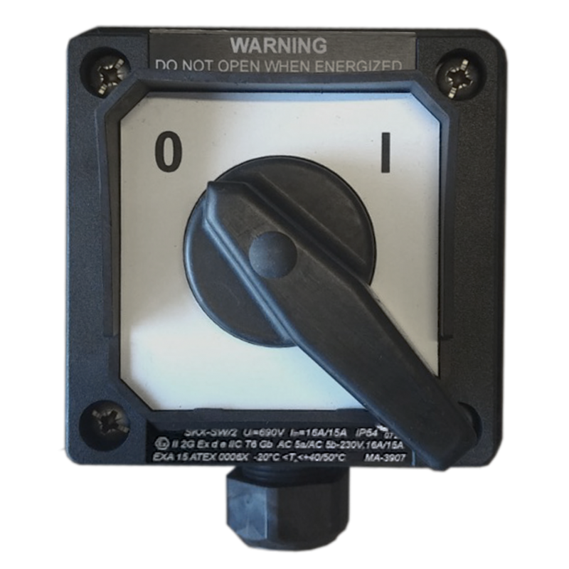 Our Ex-rated lockable work switch at 16A is designed to ensure safe and reliable power switching in explosive environments. With a durable construction and locking function, it provides extra protection and control in industrial installations.