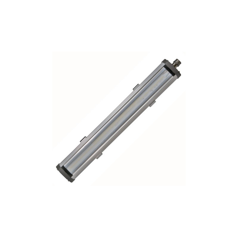 LIFEX-M är designad för explosiva miljöer. Den har en hög ljusstyrka på upp till 16 000 lumen, en justerbar monteringsvinkel (-30°/0°/+30°) och är IP66-klassad för skydd mot damm och vatten. Tillverkad i korrosionsbeständigt aluminium, med en satinfinishad glasskärm som är tålig mot stötar och UV-strålning.