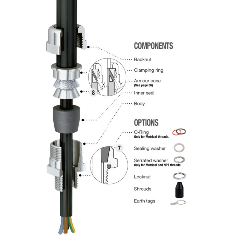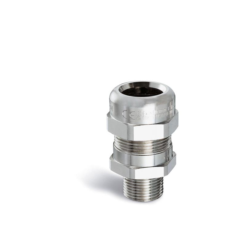 Explosionssäker kabelförskruvning för armerade kablar, godkänd för användning i både gas- och dammklassade zoner. Den erbjuder hög mekanisk hållfasthet, EMC-skydd och IP66/IP68-klassad tätning för krävande miljöer.